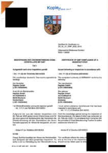Peptido GmbH ist bei der U.S. Food and Drug Administration (FDA) als Arzneimittelbetrieb registriert.